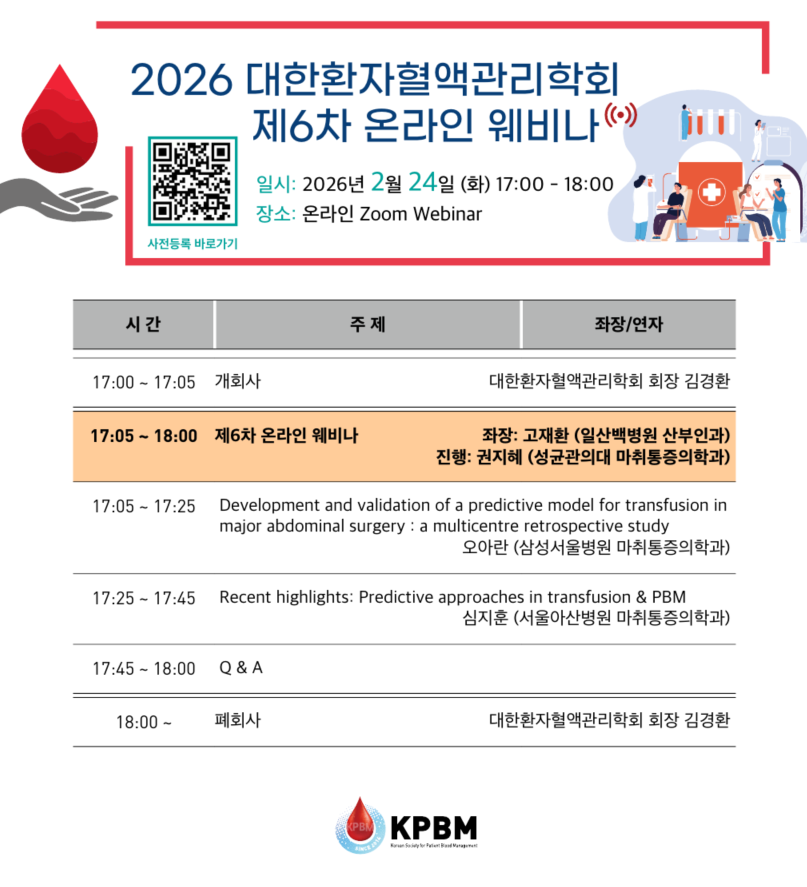 | [행사 안내] 2026년 대한환자혈액관리학회 제6차 온라인 웨비나 | ||